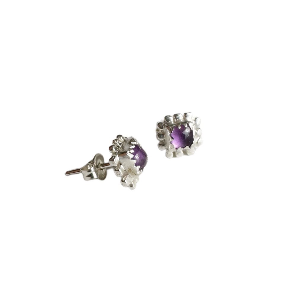 Square Amethyst Silver Studs