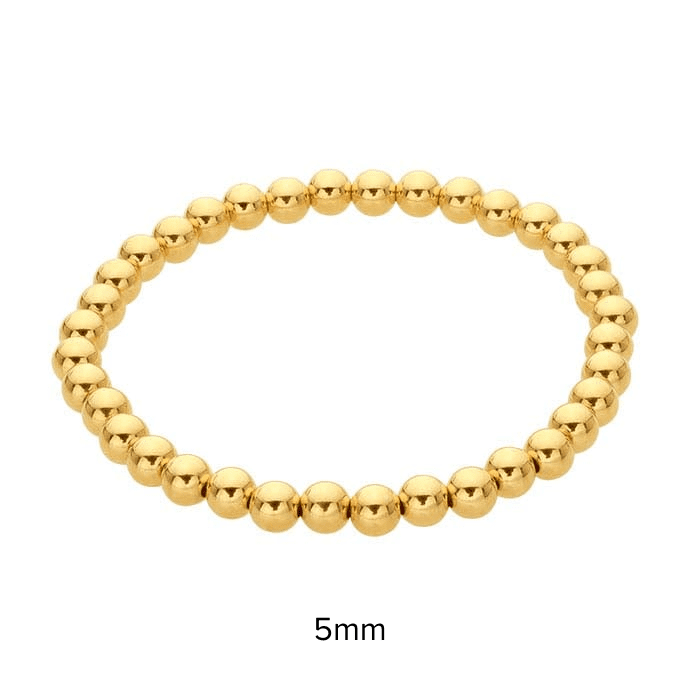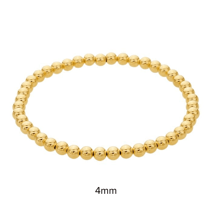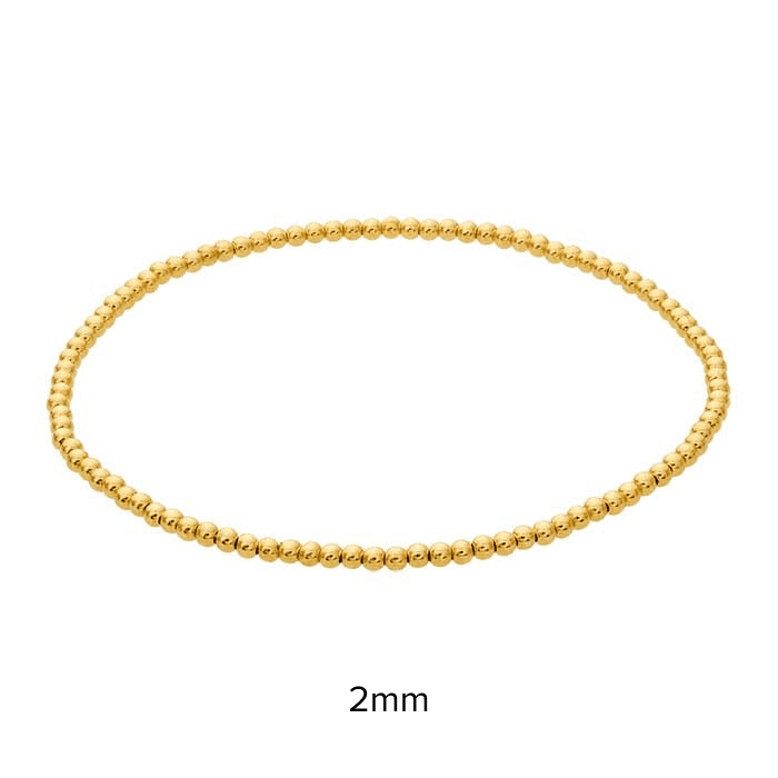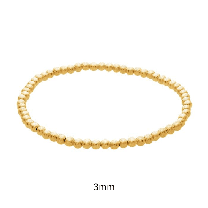 Crafted from 14/20 yellow gold fill, this bracelet features 3mm round beads strung on a durable elastic cord for easy, slip-on wear. Designed for effortless stacking, it pairs beautifully with cuffs, bangles, or other bead styles to create a personalized look.
